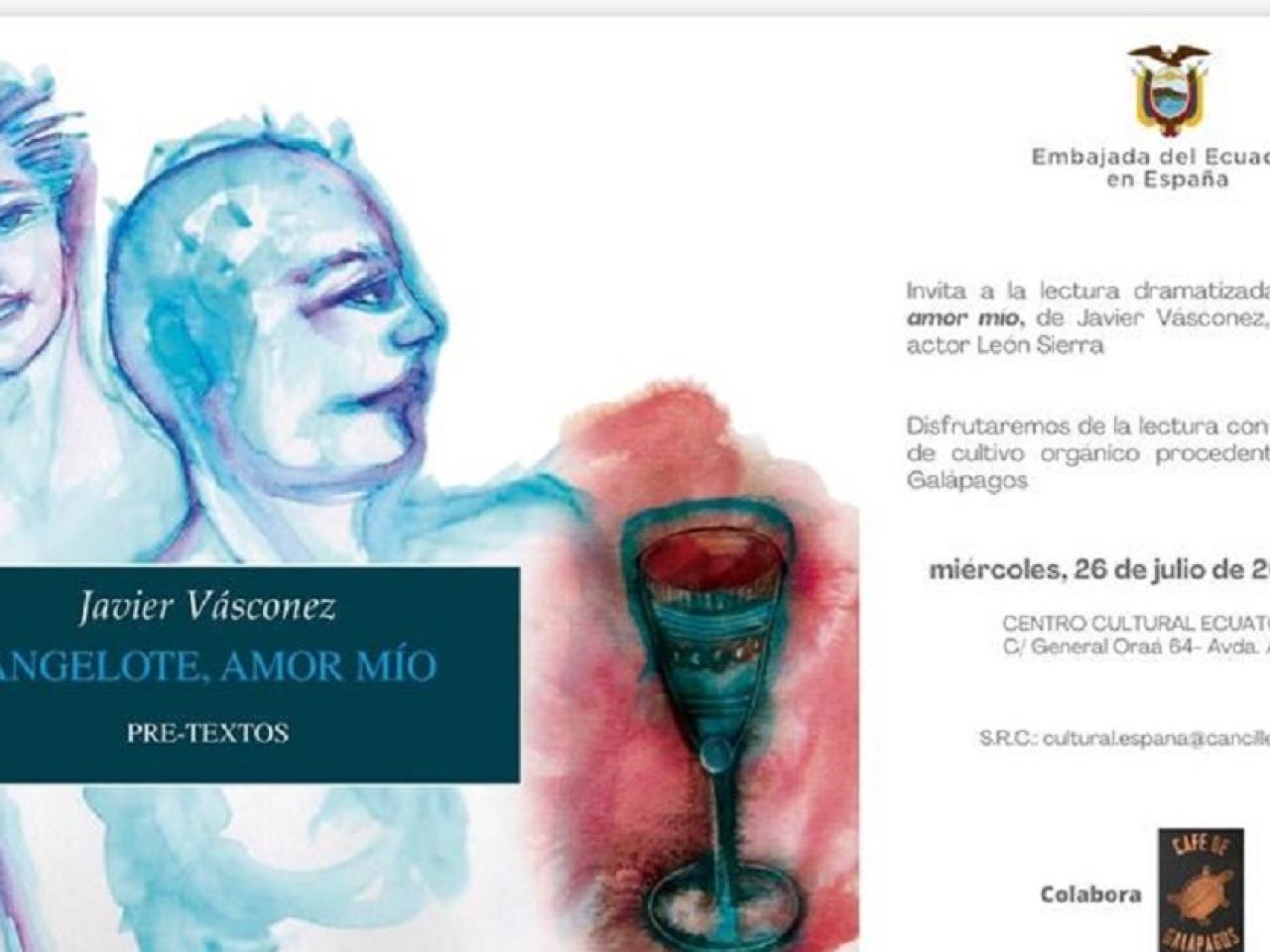 El Centro Cultural Ecuatoriano de Madrid acogió la lectura dramatizada del cuento “Angelote, amor mío”, del escritor ecuatoriano Javier Vásconez, un relato que fue prohibido en varios países del mundo y que se exhibirá en agosto en un teatro de la capital española.