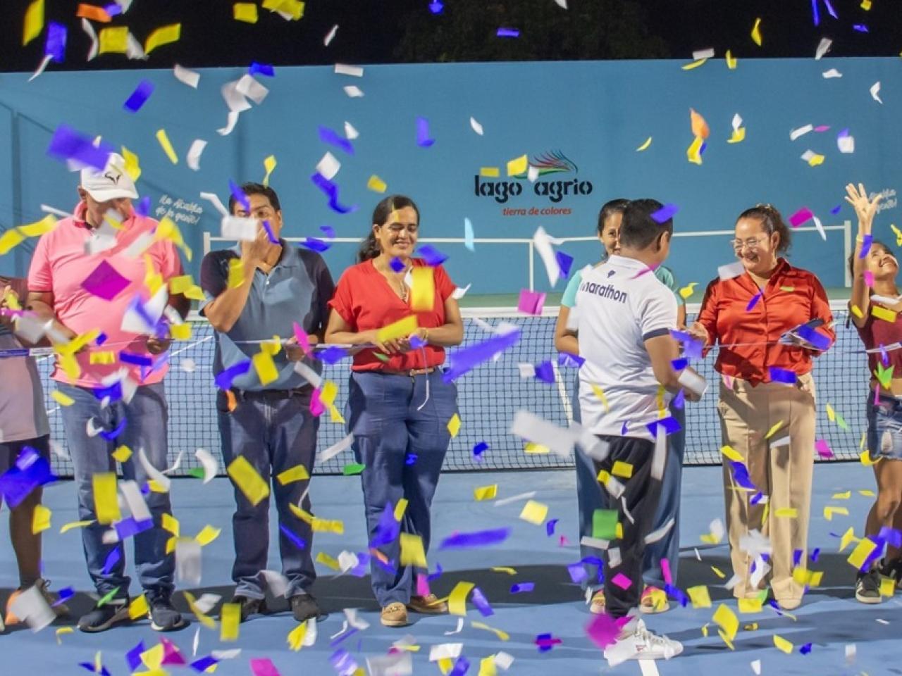 La inauguración de la cancha de tenis congregó a decenas de personas en Lago Agrio / Foto: cortesía Alcaldía de Lago Agrio