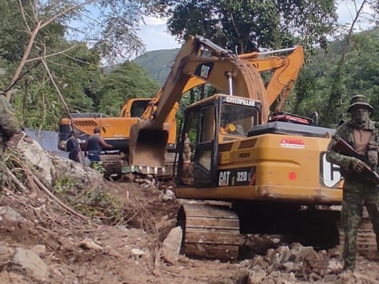 Entre el material decomisado estaban: 2 retroexcavadoras, 3 motores de succión de agua, 3 motores de energía eléctrica, 9 máquinas clasificadoras tipo Z, 2 cisternas con 490 galones de diésel, 2 tanques con capacidad de 55 galones llenos de diésel, 1 motocicleta, 3 cilindros de GLP, 2 canecas con 10 galones de gasolina y herramientas para extracción de material aurífero.
