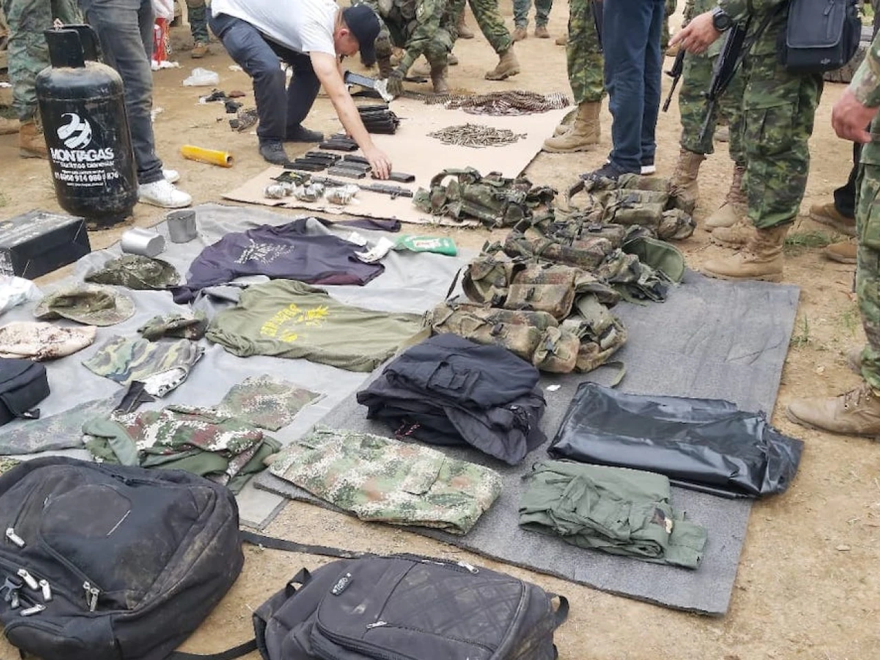 Además contenía cuatro chalecos de combate, cinco camisetas con logotipo FOS, una cocina de gas, tres mochilas, tres baterías para paneles solares, dos sombreros de selva, pesos colombianos, paneles solares y prendas de vestir.