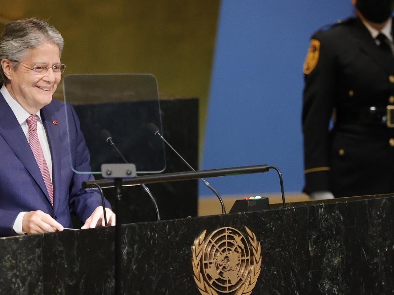 El gobernante concluyó su intervención con un agradecimiento al "abrumador apoyo" en la elección de Ecuador como miembro no permanente del Consejo de Seguridad de la ONU para el periodo 2023-2024, un tiempo "de incertidumbre y retos excepcionales" donde "Ecuador estará ahí cumpliendo su deber con el mundo".