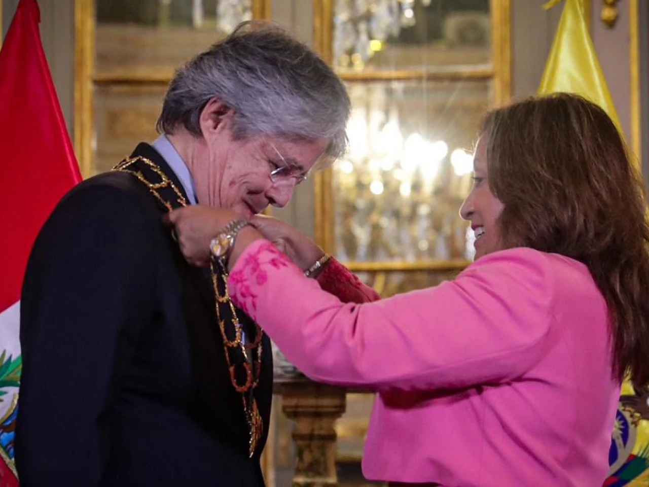 Boluarte, tras condecorar a Lasso, señaló que "ha realizado significativas contribuciones a causas y objetivos comunes" en medio de sus "lazos históricos de amistad"