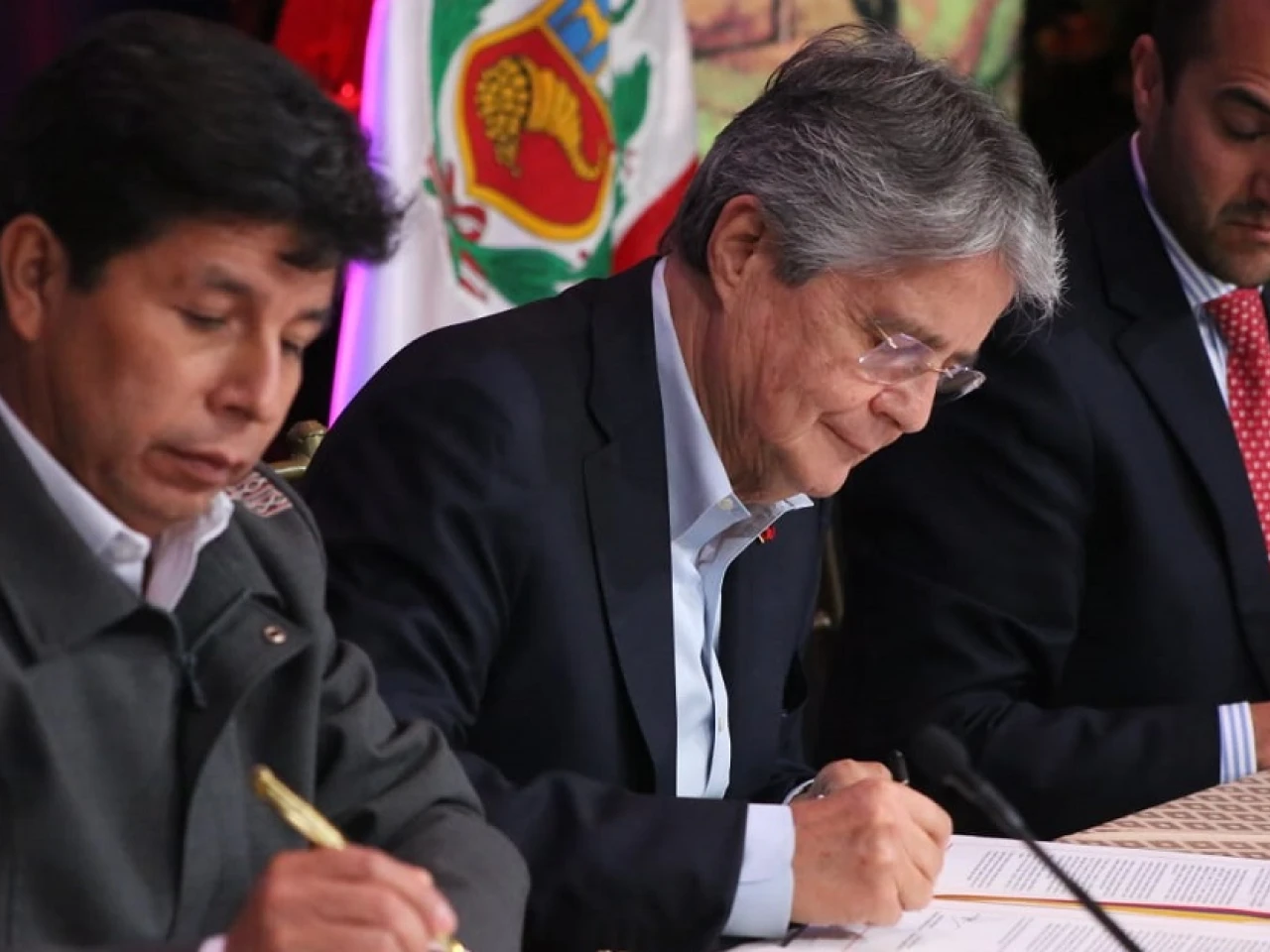 Lasso mencionó el buen estado de las relaciones bilaterales "entre países hermanos", y puso como ejemplo de cooperación entre los dos países y de "real integración" las vacunas contra la covid-19 donadas por su país para poblaciones peruanas fronterizas.