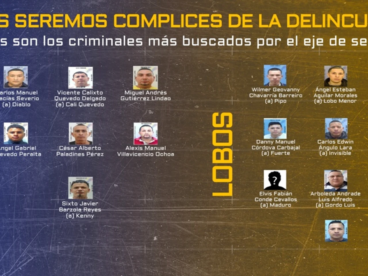 También está en este listado Wilmer Chavarría ('Pipo'), que ejerce presuntamente de líder de Los Lobos, la principal competencia de Los Choneros, y de quien se especula que dirige esta organización criminal desde fuera de Ecuador.