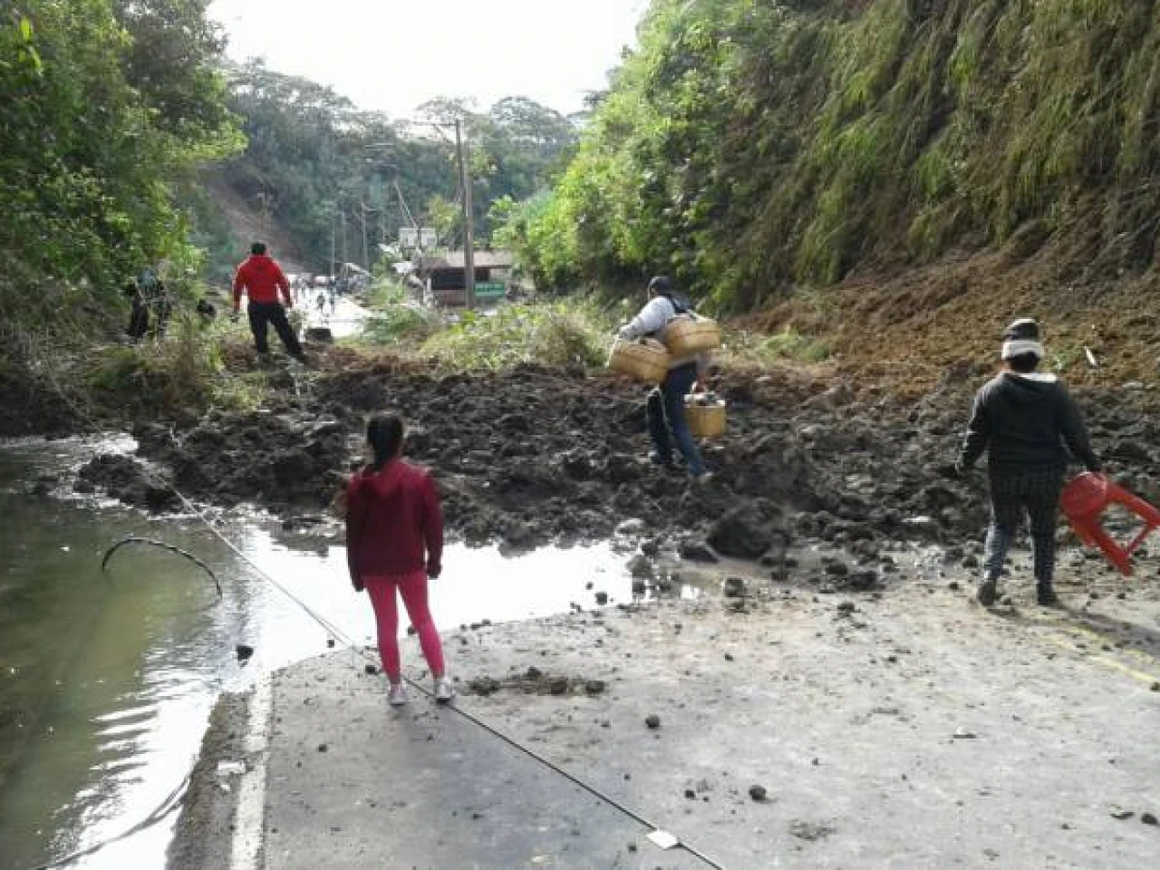 De acuerdo a la información de la Secretaría de Gestión de Riesgos (SGR), los derrumbes que llevaron agua lodosa, árboles y piedras se debieron a las lluvias que soporta la zona en los últimos días.