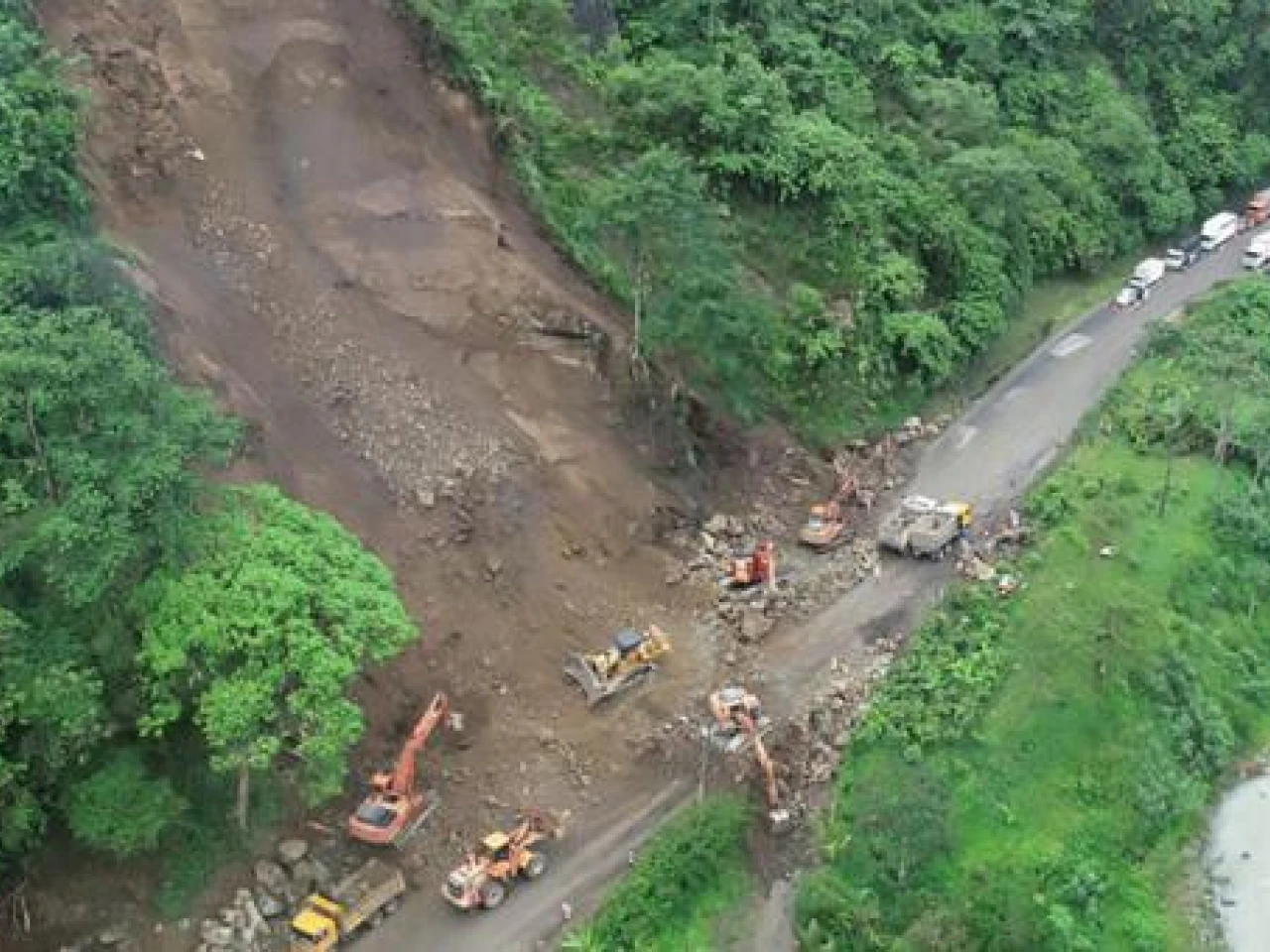 Al lugar se desplazaron miembros de la Policía Nacional además de maquinaria y personal para realizar la limpieza de la calzada.