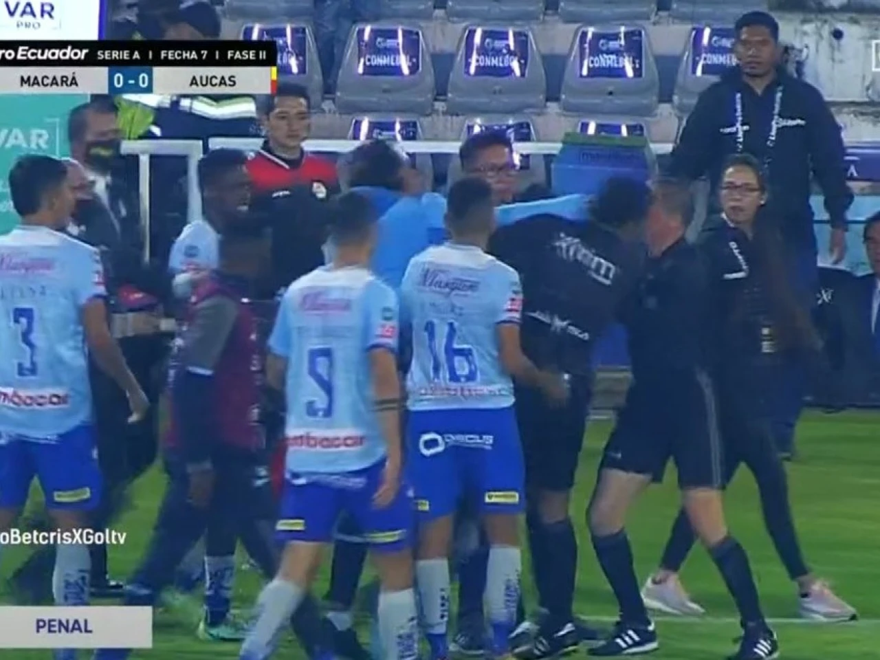 La reacción y agresión se dio cuando el juez corroboró en el VAR una falta penalti a favor de Aucas, al minuto 90, después de 10 minutos, Cajas reanudó el encuentro y Luis Cangá anotó el penalti a favor de Aucas.