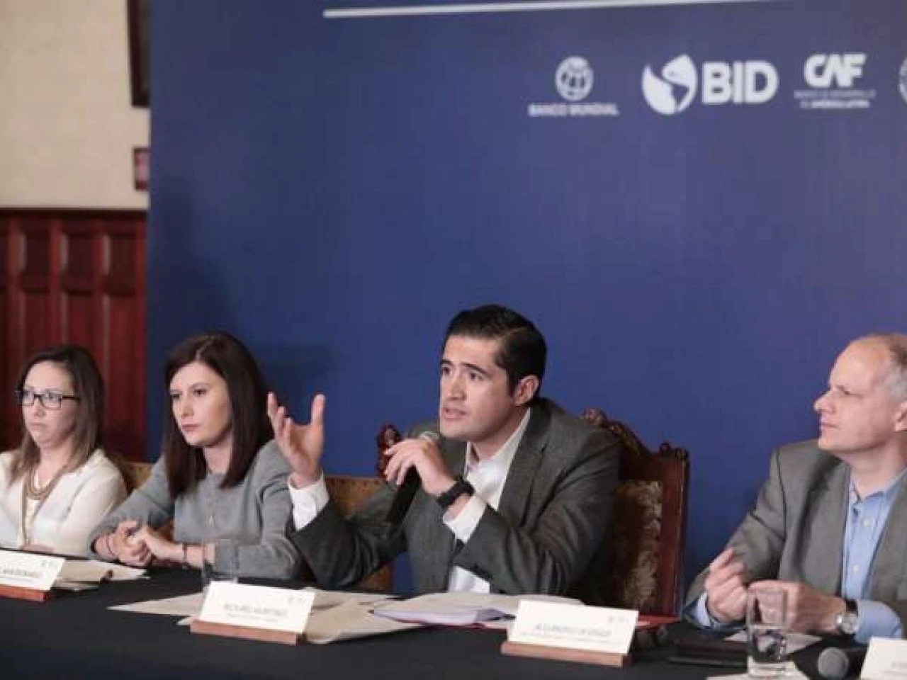 En un hecho inédito, durante la mañana de ayer, los representantes de siete organismos multilaterales, en conjunto con Richard Martínez, ministro de Economía y otros funcionarios de Gobierno, dieron una rueda de prensa en el palacio de Carondelet.