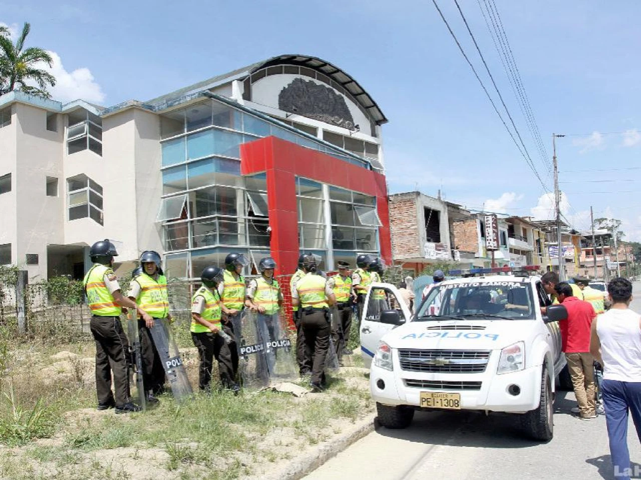 Ellos se encontraban al interior del edificio pero salieron luego de que la Policía Nacional llegara para dar cumplimiento a una orden emitida por la Intendencia General de Policía de Zamora Chinchipe. Esto ocurrió en horas del mediodía, sin registrarse ningún tipo de incidentes.