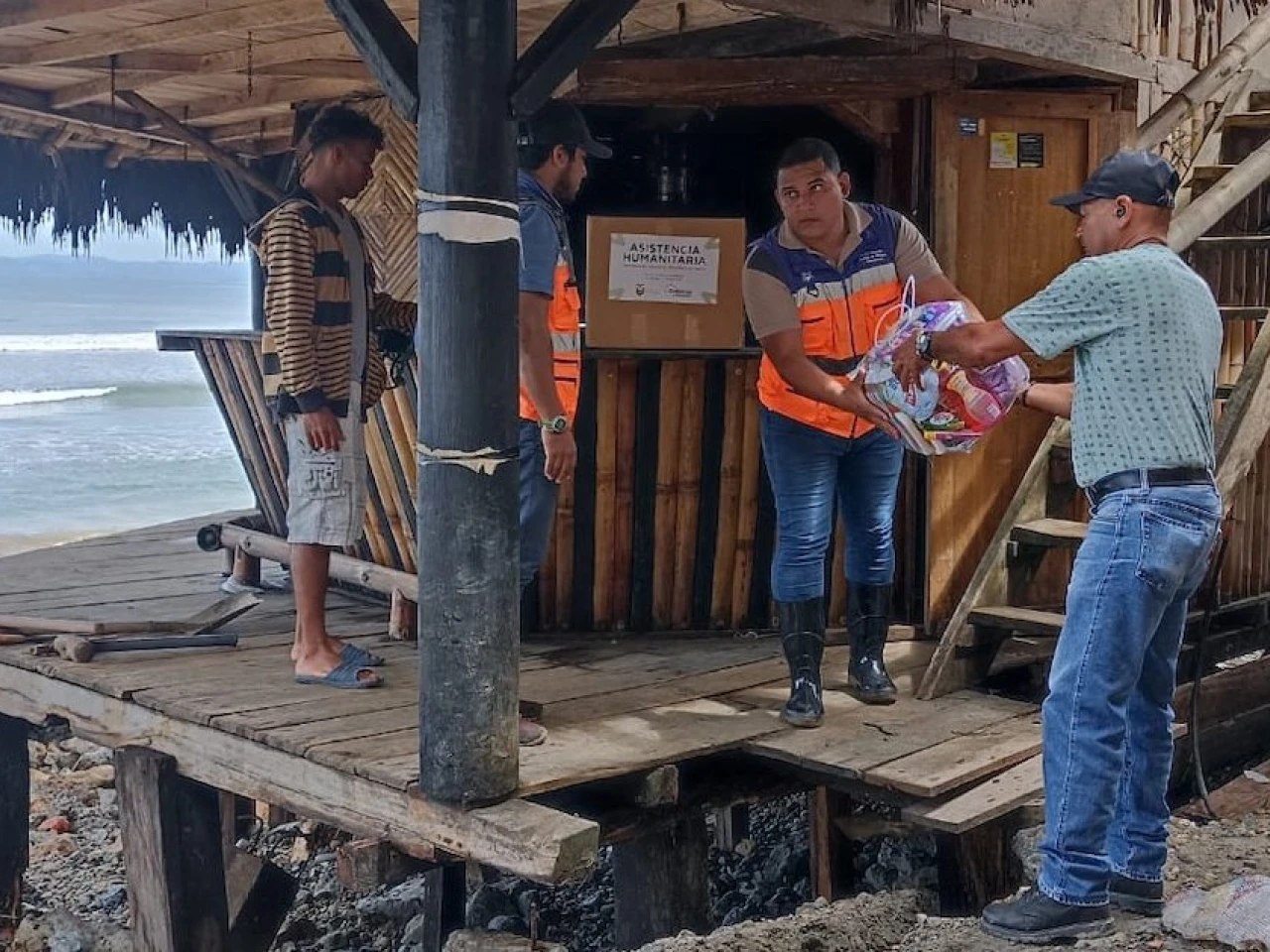 Técnicos del SGR realizan recorridos por el perfil costero, con la finalidad de evaluar los daños. En Mompiche, provincia de Esmeraldas, se ha entregado asistencia humanitaria a las familias afectadas.
