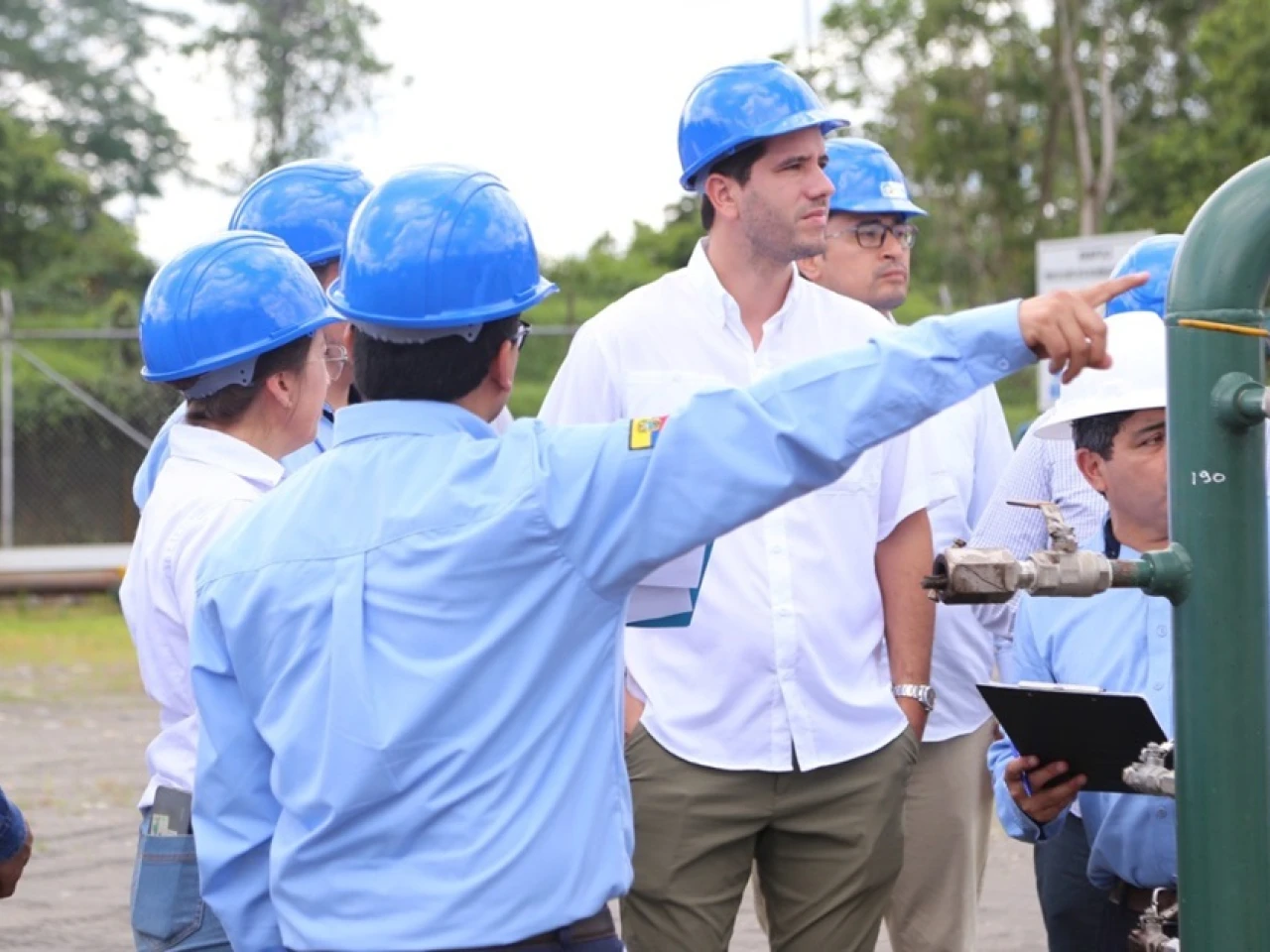 La agenda incluyó un recorrido por la estación Sacha Norte 2, en la cual se aprovecha el gas asociado al petróleo, que se obtiene de los pozos de producción de crudo, para la generación de energía eléctrica que se utiliza en las operaciones.