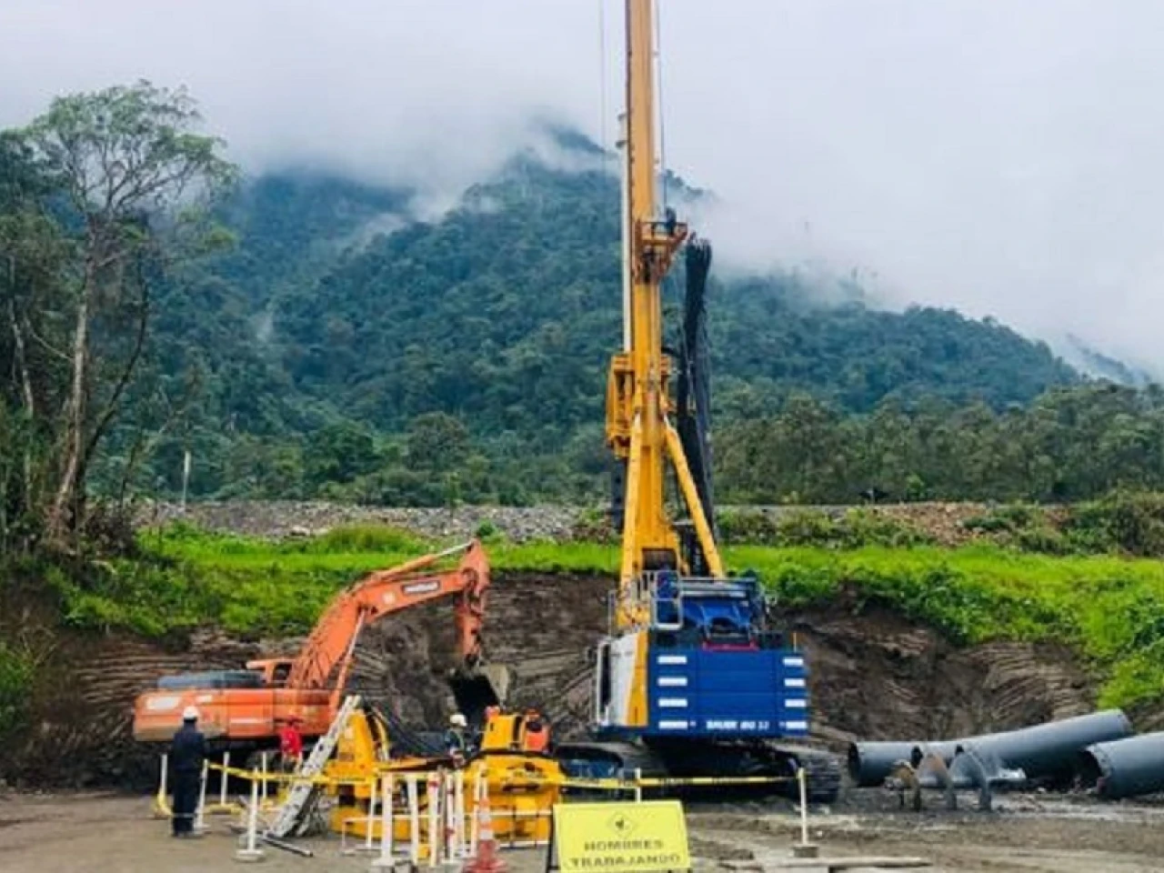El equipo especial de perforación para la construcción de la pantalla de pilotes secantes de la captación de la central hidroeléctrica Coca Codo Sinclair, arribó al país.