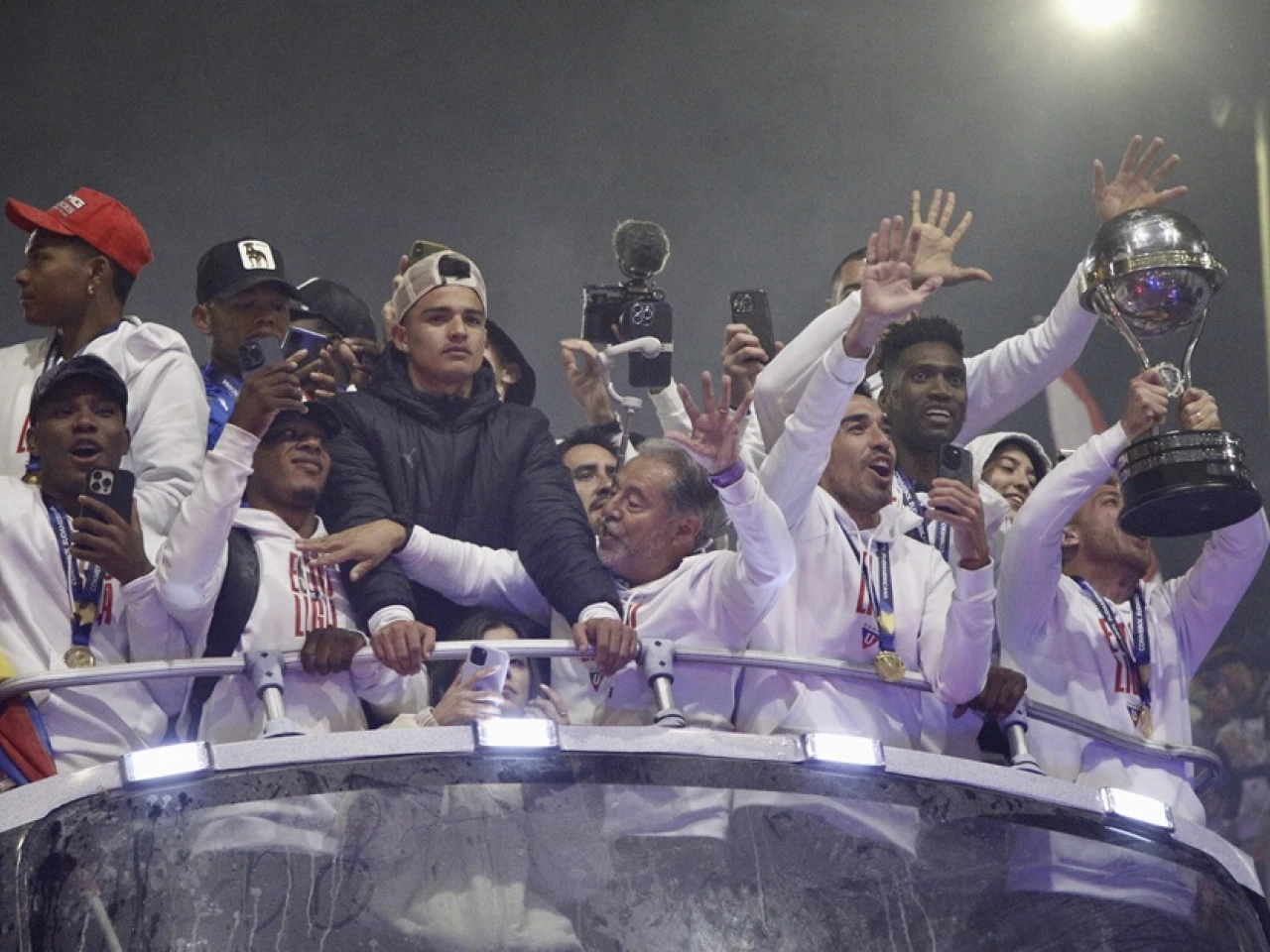 Liga de Quito celebró este domingo por todo lo alto la consecución de su segunda Copa Sudamericana con una caravana ante miles de eufóricos hinchas que recorrió buena parte de la capital de Ecuador para lucir el quinto título del club albo.