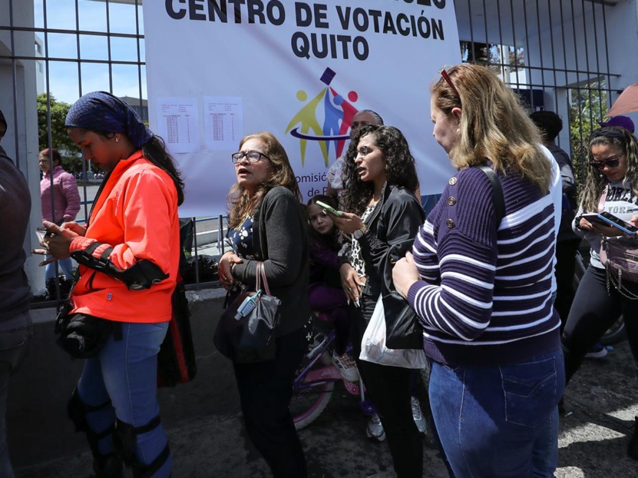 En Quito se formó en la mañana una larga fila de personas, muchas de ellas vestidas con los colores de la bandera (amarillo, azul y rojo), en las afueras de un coliseo de la Universidad Pontificia Católica del Ecuador (PUCE), que sirvió de recinto electoral para las primarias en esta ciudad.