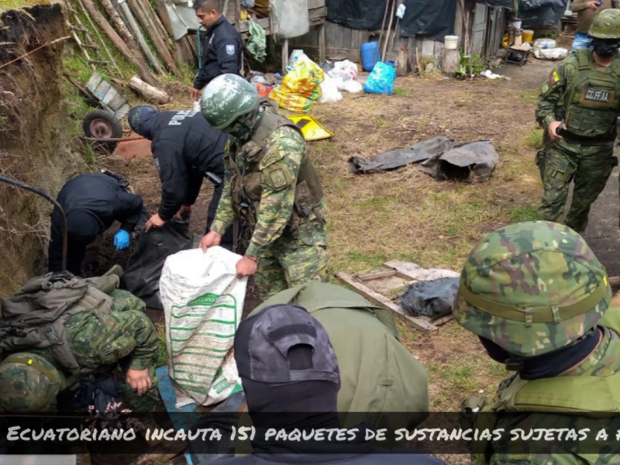 Militares ecuatorianos hallaron 280 paquetes de sustancias ilegales, presumiblemente droga, durante unas operaciones efectuadas en la provincia andina de Carchi, en la frontera con Colombia, según informó este jueves el Comando Conjunto de las Fuerzas Armadas.