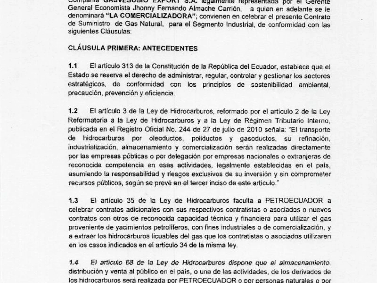 El objetivo del contrato era que EP Petroecuador entregue gas natural a la comercializadora privada que mantiene su planta justamente al frente de la planta de licuefacción de Bajo Alto. A su vez, Gasvesubio comercializaría ese combustible (unos 14 millones de pies cúbicos) y colocaría a empresas locales que lo usan para su producción, entre ellas, empresas de cerámica.