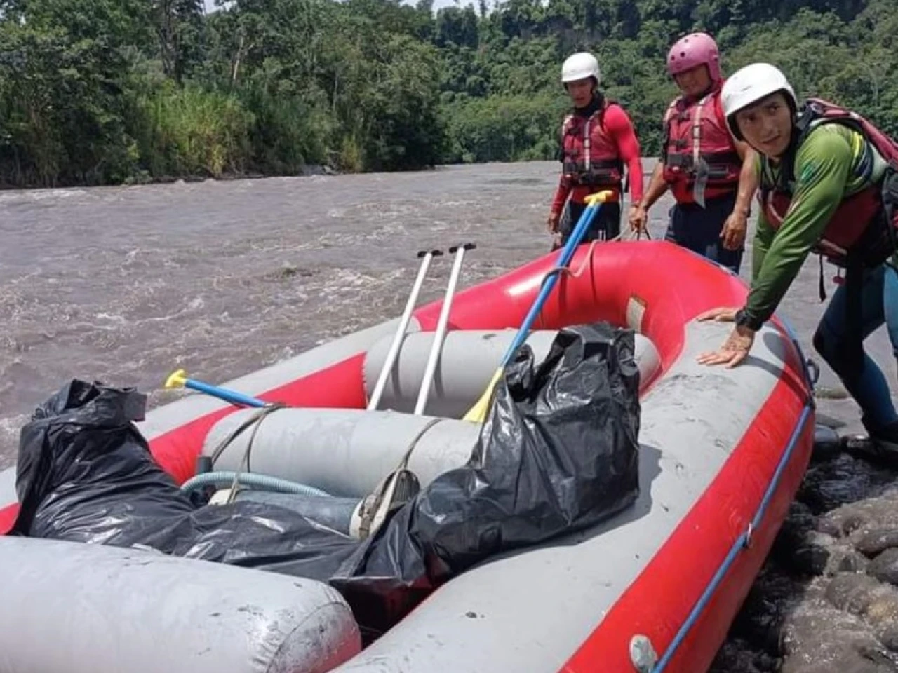 En la búsqueda de las personas desaparecidas participan socorristas de los Cuerpos de Bomberos de Sucúa, Morona y Logroño con botes y equipos de rescate.