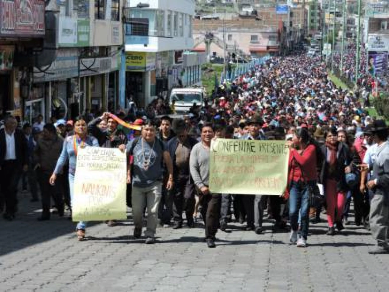 La protesta mezcló los pedidos de los campesinos que dicen estar afectados por las políticas agrícolas del régimen y las muestras de apoyo a la nacionalidad shuar que reclama por la presencia de las mineras en sus territorios.