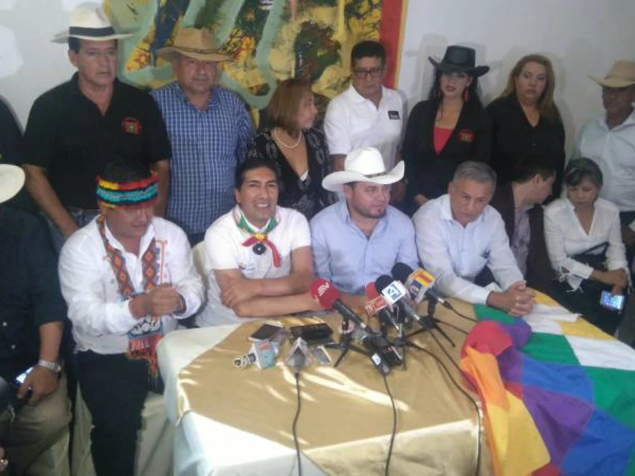 Manuel Gonzaga, coordinador nacional de los Pueblos Montuvios del Ecuador; Jaime Vargas, presidente de la Confederación de Nacionalidades Indígenas del Ecuador (Conaie); y Yaku Pérez Guartambel, presidente de la Confederación Kichwa del Ecuador (Ecuarunari), solicitaron a la Fiscalía General del Estado (FGE), en rueda de prensa realizada esta mañana en Guayaquil, que inicie una investigación contra el expresidente Rafael Correa por los casos de corrupción que involucran a obras estratégicas y a la constructora brasileña Odebrecht.