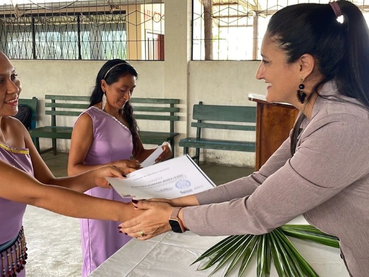 Las productoras recibieron certificados, que les acredita haberse capacitado en 11 módulos enfocados a: planificación predial, manejo y conservación de suelo y agua, bioinsumos, forestería, crianza de especies menores, fortalecimiento organizacional, comercialización y soberanía alimentaria.