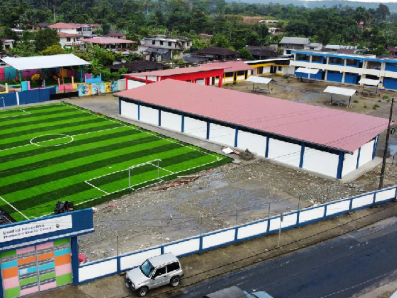 La intervención en la institución incluyó la construcción de dos nuevos bloques de aulas, equipamiento y mobiliario moderno, adecuación de baterías sanitarias, instalación de una cancha sintética y juegos infantiles. También se realizaron mejoras en los espacios para educación Inicial.