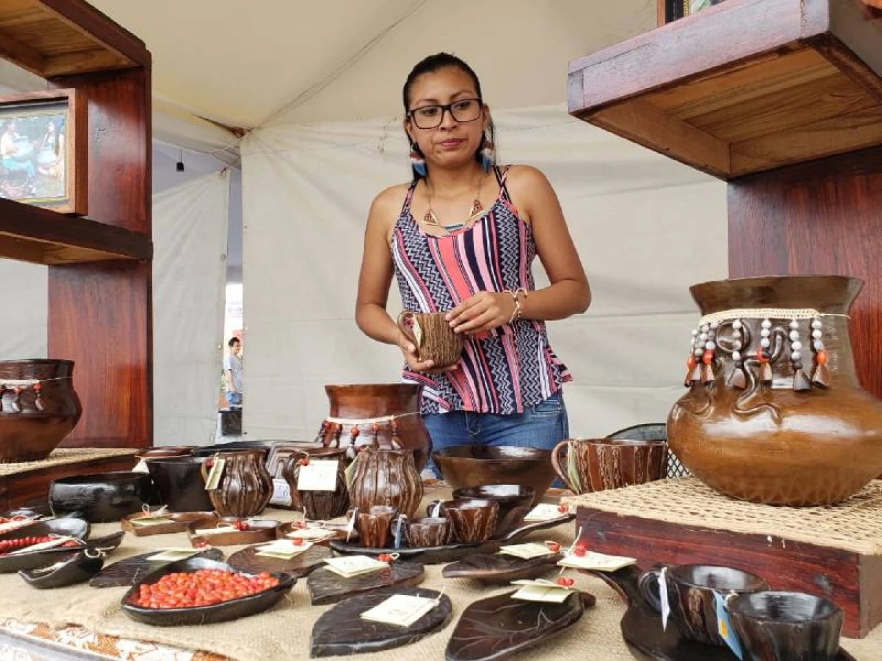 Es un método sin químicos, menciona Cintya en una nota publicada por la Asociación de Municipalidades Ecuatorianas (AME). El último paso es el etiquetado, complementa.En una feria de emprendimientos efectuada en Tena, Cintya ofrece ollas, vasijas, bandejas, tasas y platos, entre otros utensilios.