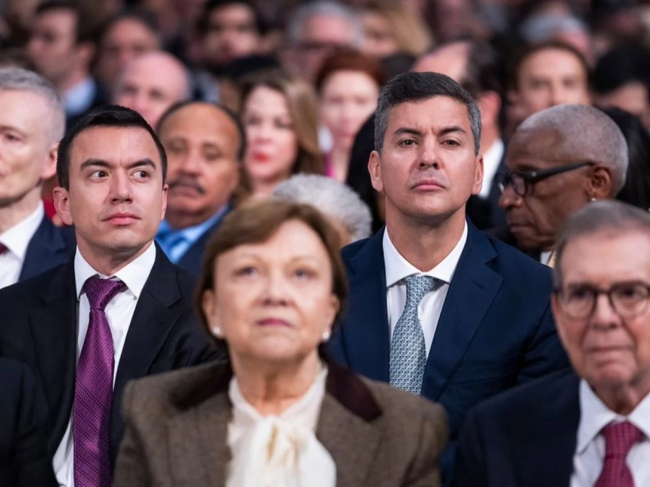 "Nosotros hemos venido acá a cumplir con lo que nos dice nuestro corazón, que es apoyar todas las buenas causas, apoyar la democracia en nuestra región", declaró el presidente ecuatoriano, que viajó a Noruega para acompañar la ceremonia como lo hicieron también sus homólogos de Argentina, Paraguay y Panamá.