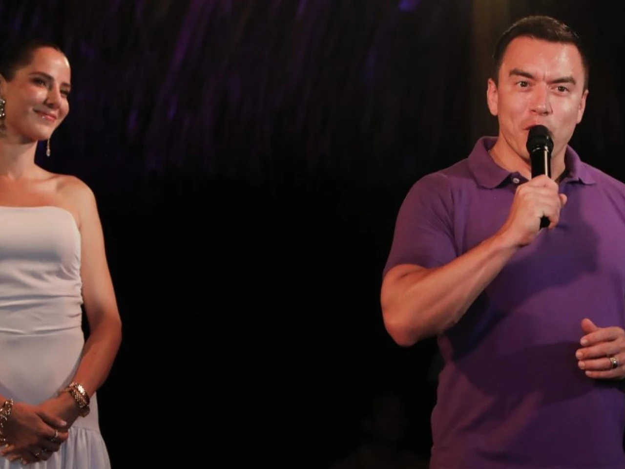 El presidentre reelegido se dirigió a sus seguidores desde una pequeña tarima en el patio de su casa de la playa, ubicada en Olón, un pueblo de la provincia costera de Santa Elena, donde tiene fijada su residencia, en compañía de su esposa, la 'influencer' Lavinia Valbonesi, y de su madre, Annabella Azín, quien es una de las asambleístas electas con más posibilidades de presidir la Asamblea Nacional (Parlamento).