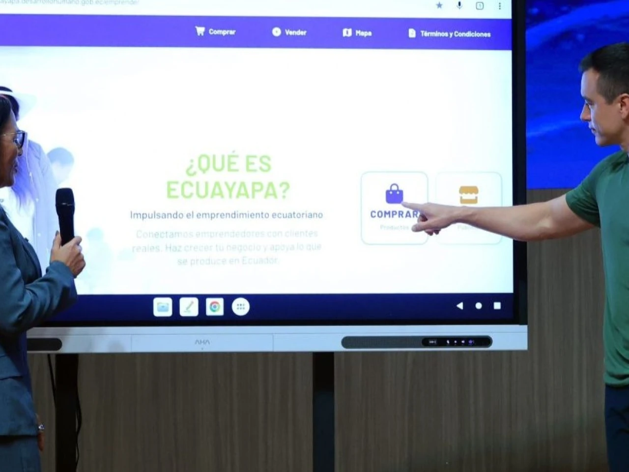 El presidente de Ecuador, Daniel Noboa, presentó el portal Ecuayapa, una plataforma digital que busca promocionar productos y servicios de emprendedores vinculados a programas sociales del Estado.