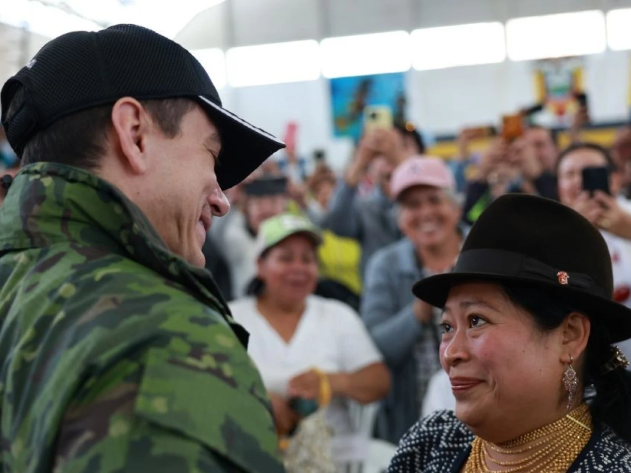 Durante un evento en el Coliseo Jacinto Collahuazo, donde entregó Bonos Raíces, créditos y herramientas para agricultores de Imbabura, aseguró: “Imbabura no está sola, jamás sientan que está sola. Nadie nos va a impedir llegar a las comunidades”.