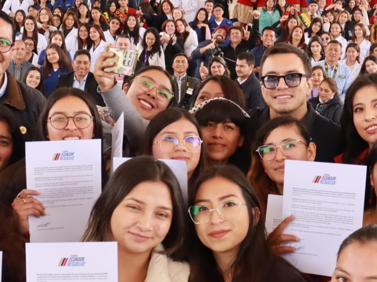 Noboa resaltó que esta es la mayor entrega de becas a mujeres en la historia de Ecuador. Informó que hasta fin de mes se prevé la entrega de 40.000 becas a mujeres.