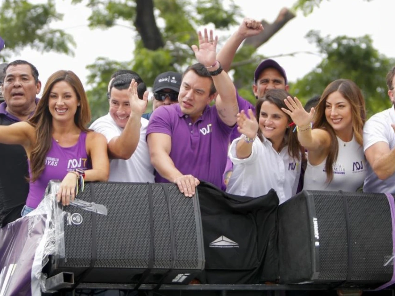 El público presente respondió con un algarabía antes de que Noboa hiciese un último llamamiento a votar a ADN tanto para presidente como para la Asamblea Nacional (Parlamento), donde manifestó su confianza en arrebatar el control de Legislativo al correísmo.
