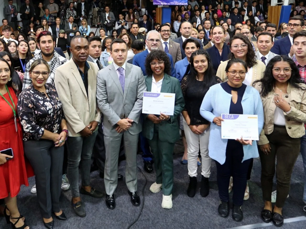 Desde el campus de la Universidad UTE, en Quito, Noboa destacó la importancia de la fuerza de los jóvenes para sacar adelante al país. Entregó becas de certificación de competencias laborales y lideró la suscripción de un convenio entre el MIES y la UTE de 100 becas de pregrado y posgrado a jóvenes usuarios de los servicios de la cartera de Estado.