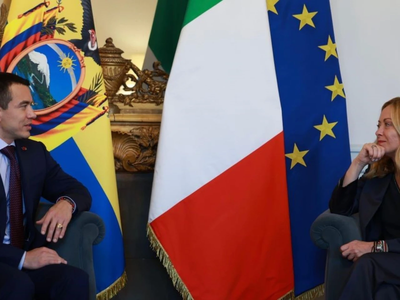 Poco antes, Noboa fue recibido por Meloni en el patio central del Palacio Chigi, sede de la presidencia del Gobierno italiano, con un piquete de honor que entonó los himnos de ambos países.