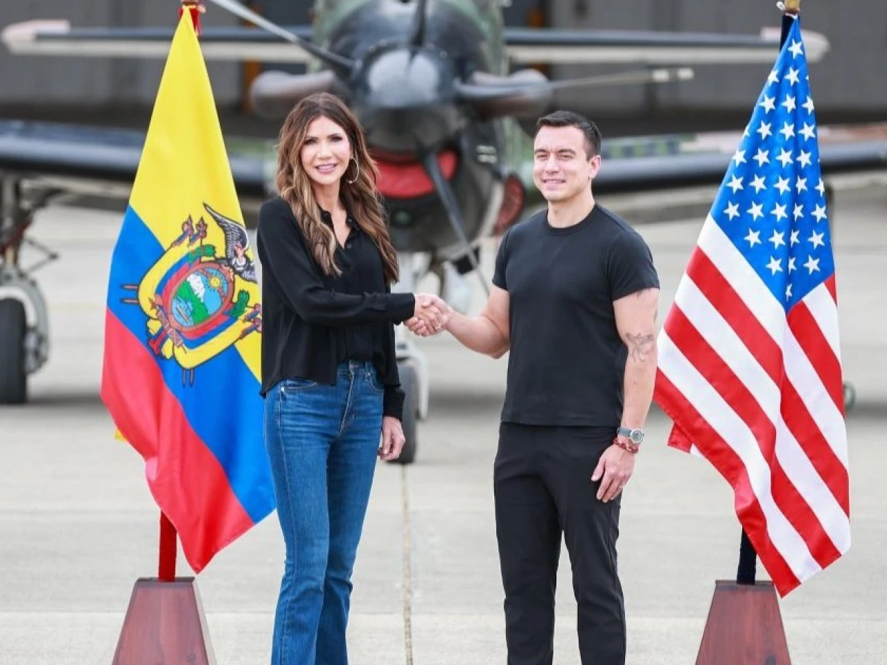 Durante la reunión en el Escuadrón de Combate N.º 2313, Noboa y Noem revisaron avances en proyectos conjuntos sobre seguridad y control fronterizo. El mandatario reiteró su compromiso de trabajar con Estados Unidos bajo principios de soberanía y beneficio mutuo.