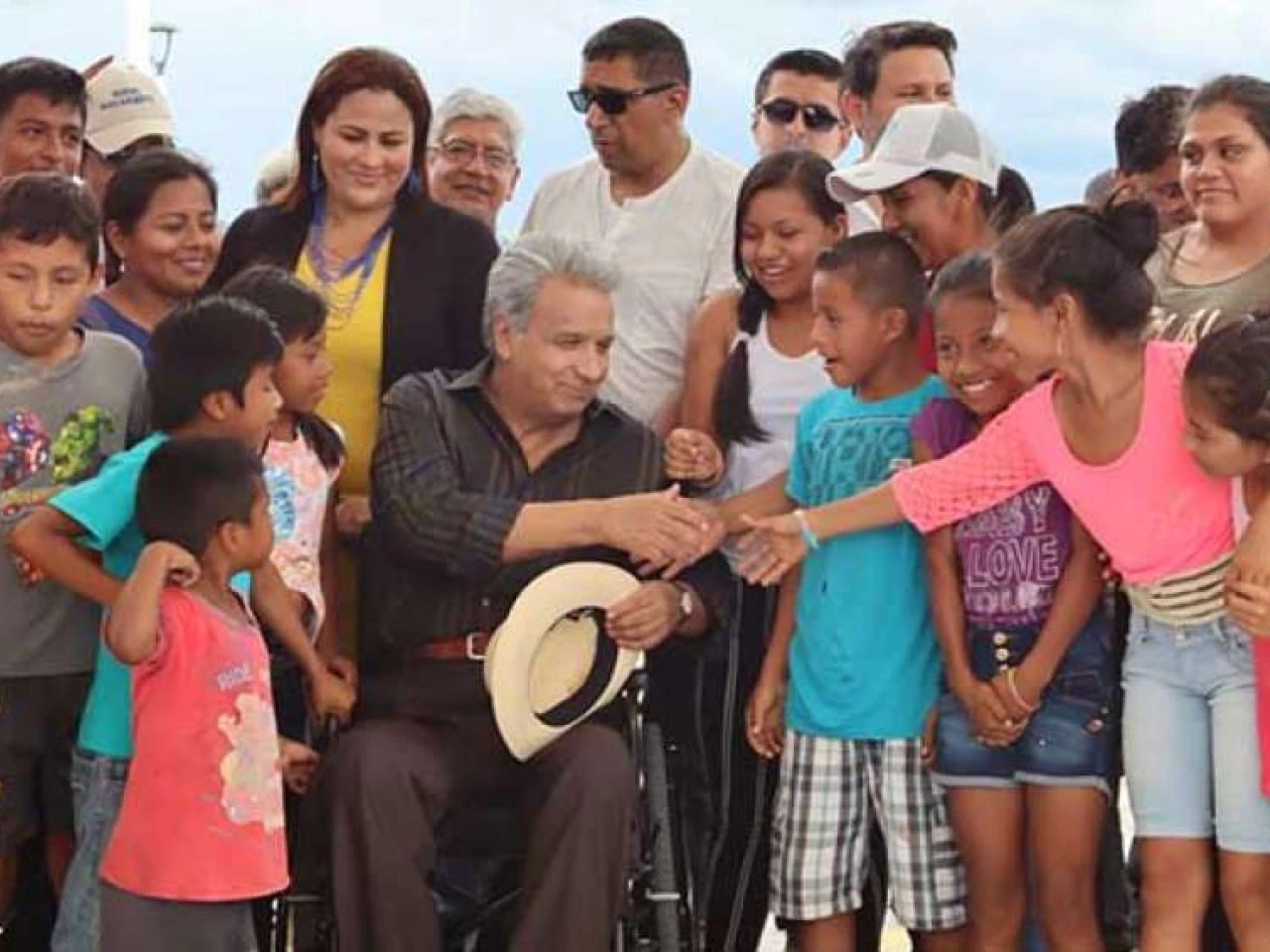 El presidente Moreno regresó a la comunidad donde nació para entregar la obra que evitará la destrucción por la crecida del río y aumentará el turismo.