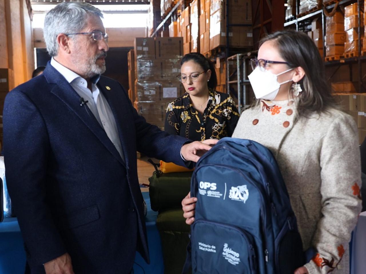 En el mismo lugar, se desarrolló la entrega de 48 kits portátiles donados por la Organización Panamericana de la Salud (OPS) para el uso de brigadas médicas en zonas de difícil acceso en las provincias de Morona Santiago, Napo, Pastaza, Orellana, Zamora Chinchipe y Cañar. Los equipos e insumos serán distribuidos en 48 centros de salud del MSP.
