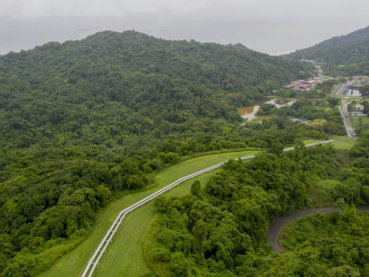 En la zona se instaló un dique subacuático permeable destinado a proteger la captación de agua de la hidroeléctrica Coca Codo Sinclair, infraestructura estratégica afectada por la dinámica de los ríos Coca, Loco y Quijos. Desde el sitio se observa el trazado de la nueva variante, donde se habilita el paso temporal de las tuberías.