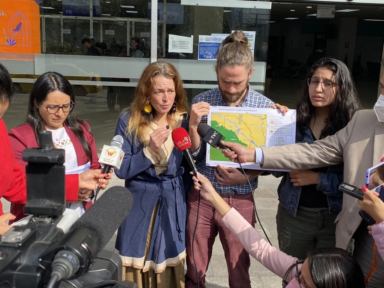 Lo hizo en una rueda de prensa frente al complejo judicial norte de Quito, donde pidió que se dé trato prioritario y convoque a una audiencia inmediata para impedir que se produzca "un etnocidio".