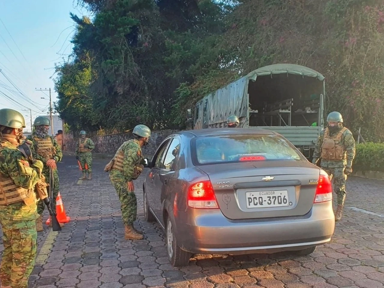 En Quito, la capital del país, las Fuerzas Armadas informaron de un control en la localidad de Conocoto, donde soldados inspeccionaban vehículos desde por la mañana "con la finalidad de precautelar la seguridad de la ciudadanía y contrarrestar los actos delictivos".