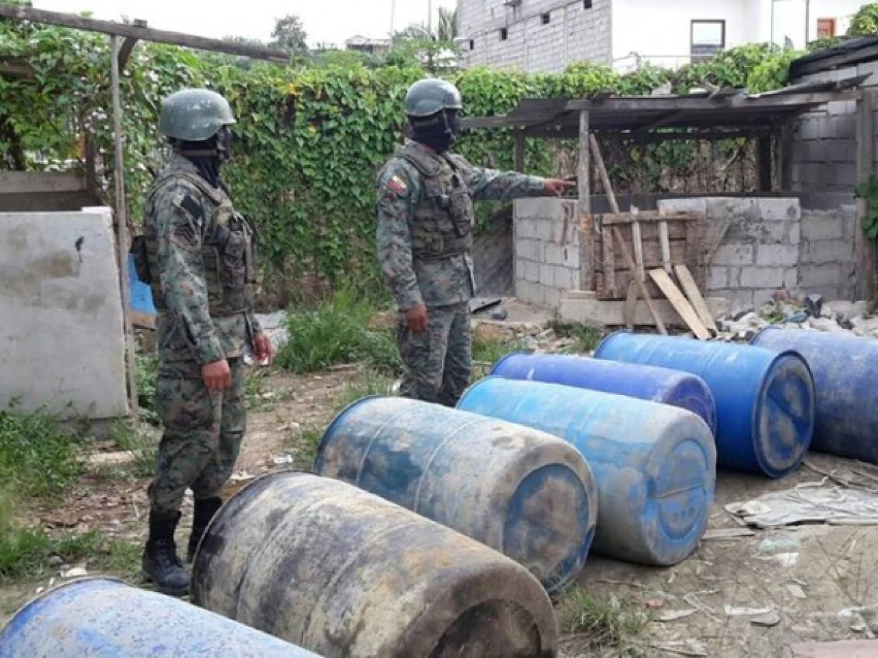 Asimismo, tras efectuar un reconocimiento en el sector de “La Balastrera”, parroquia General Farfán, en Lago Agrio (Sucumbíos), el personal del CO1 decomisó 110 galones de diésel y un cilindro de GLP, presumiblemente abandonados por traficantes al percatarse de la presencia del personal de Fuerzas Armadas.
