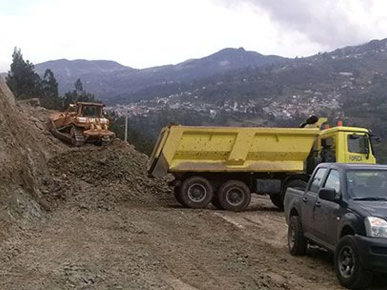 La presencia de maquinaria en la carretera Sígsig-Matanga-Gualaquiza constaron ayer representantes del Ministerio de Transporte y Obras Públicas, MTOP, acompañados de técnicos de la empresa FOPECA, subcontratista de Sinohydro encargada de la reconstrucción de la vía.
