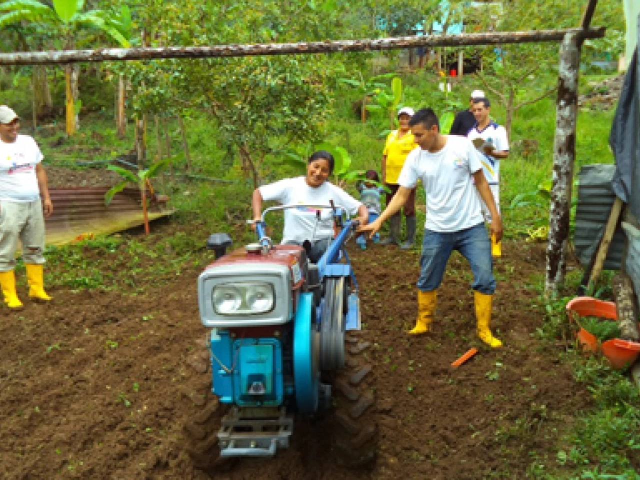 En el caso de los integrantes de la Asociación Ganaderos Pradera de Chicaña, cantón Yantzaza, desarrollan actividades agrícolas en los predios otorgados por el Gobierno Parroquial de Chicaña. Con el motocultor destinado para esta organización se prepara la tierra para la siembra de cebolla de hoja, tomate riñón, cilantro, lechuga, nabo, acelga y frutales, producción que servirá para el autoconsumo familiar y venta en los mercados de la localidad.