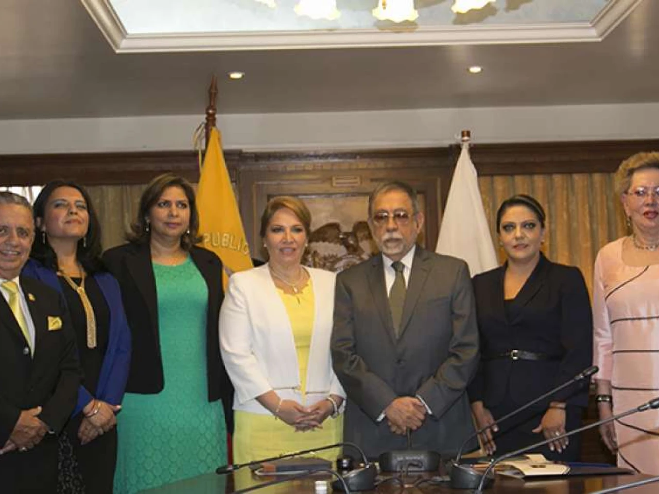 En 2015, Pamela M. llegó a la Corte Constitucional. En esta foto está junto a los magistrados de ese entonces, incluido Patricio Pazmiño (esquina der.) (Foto: El Telégrafo)