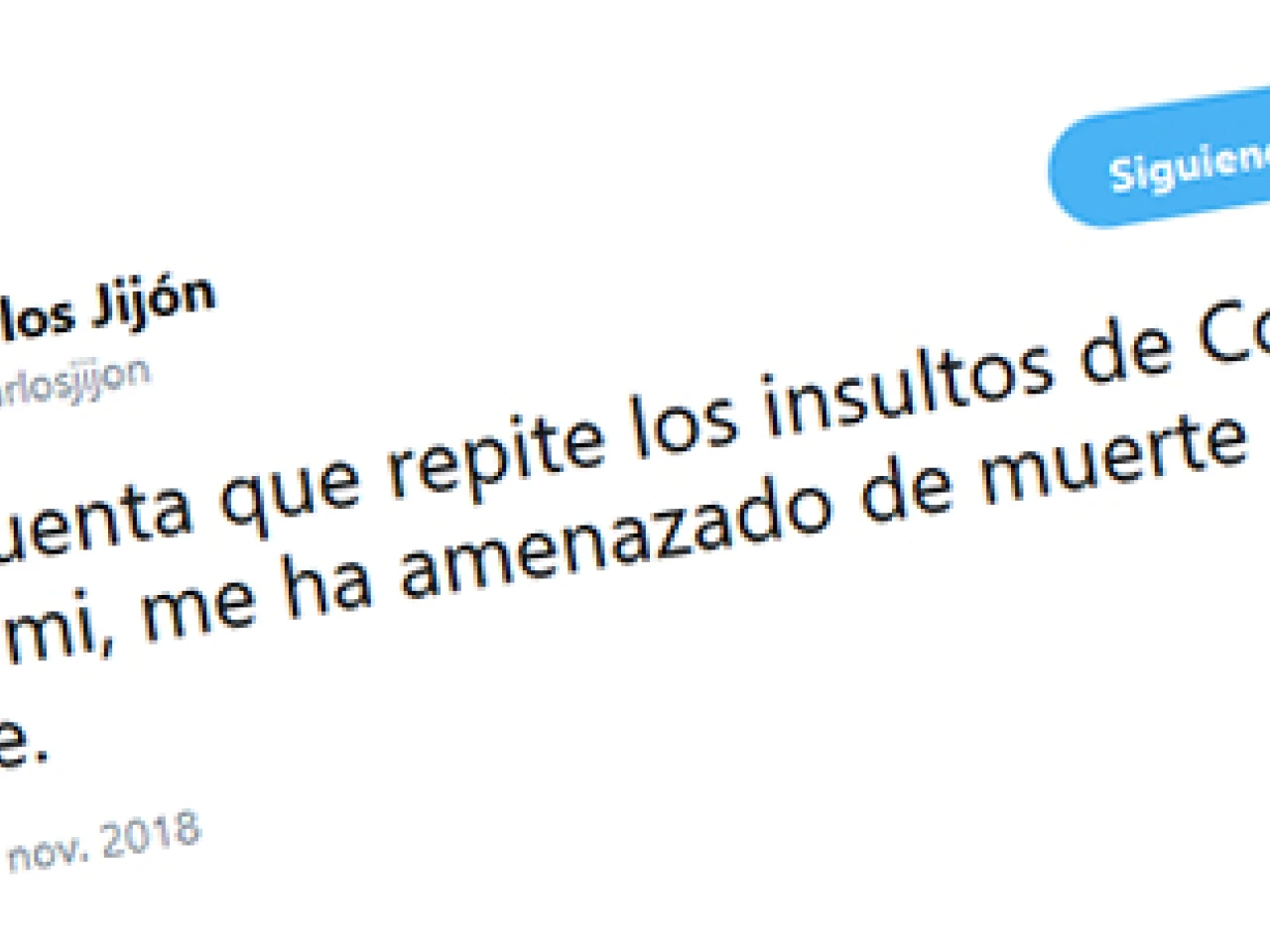 Una cuenta que repite los insultos de Correa hacia mi, me ha amenazado de muerte esta noche.