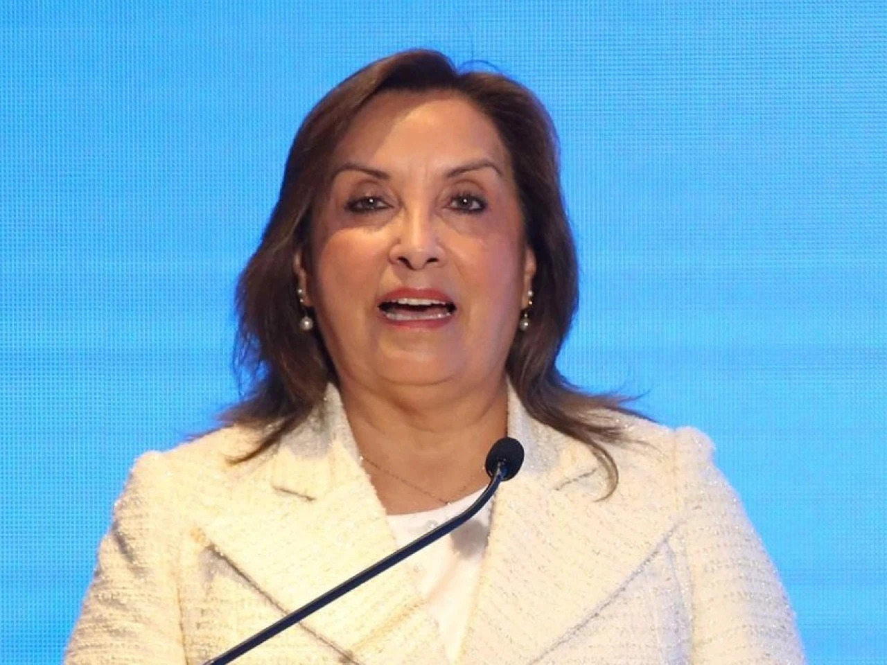 La presidenta Dina Boluarte durante el anuncio de medidas contra la minería ilegal y el crimen organizado / Foto: EFE