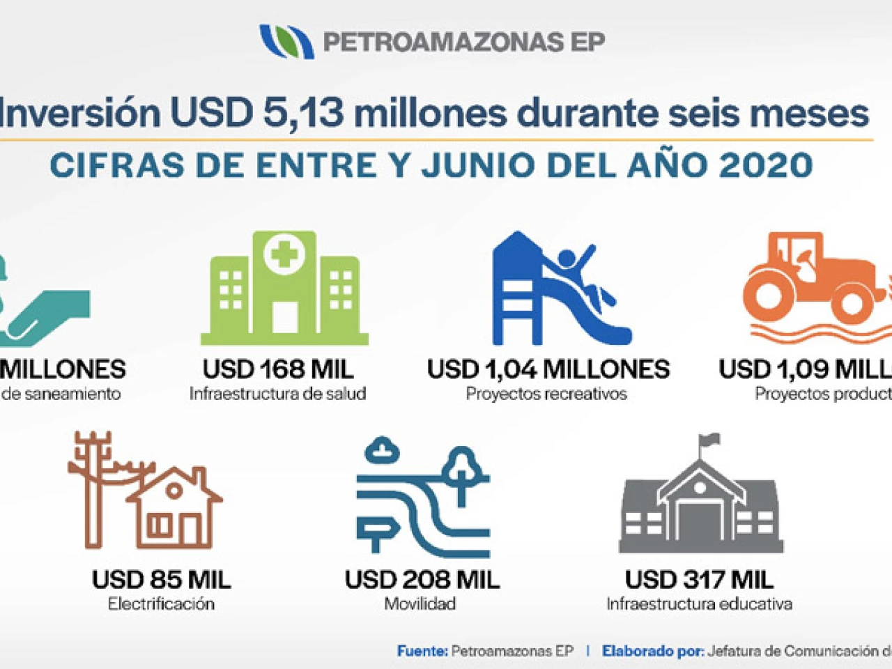Juan Carlos Bermeo Calderón, Gerente General de Petroamazonas, informó que entre enero y junio de este año, la empresa “invirtió más de $1.6 millones en la construcción de 10 proyectos de infraestructura comunitaria en sus zonas de influencia directa, para mejorar la calidad de vida de las poblaciones y dinamizar la economía local”.