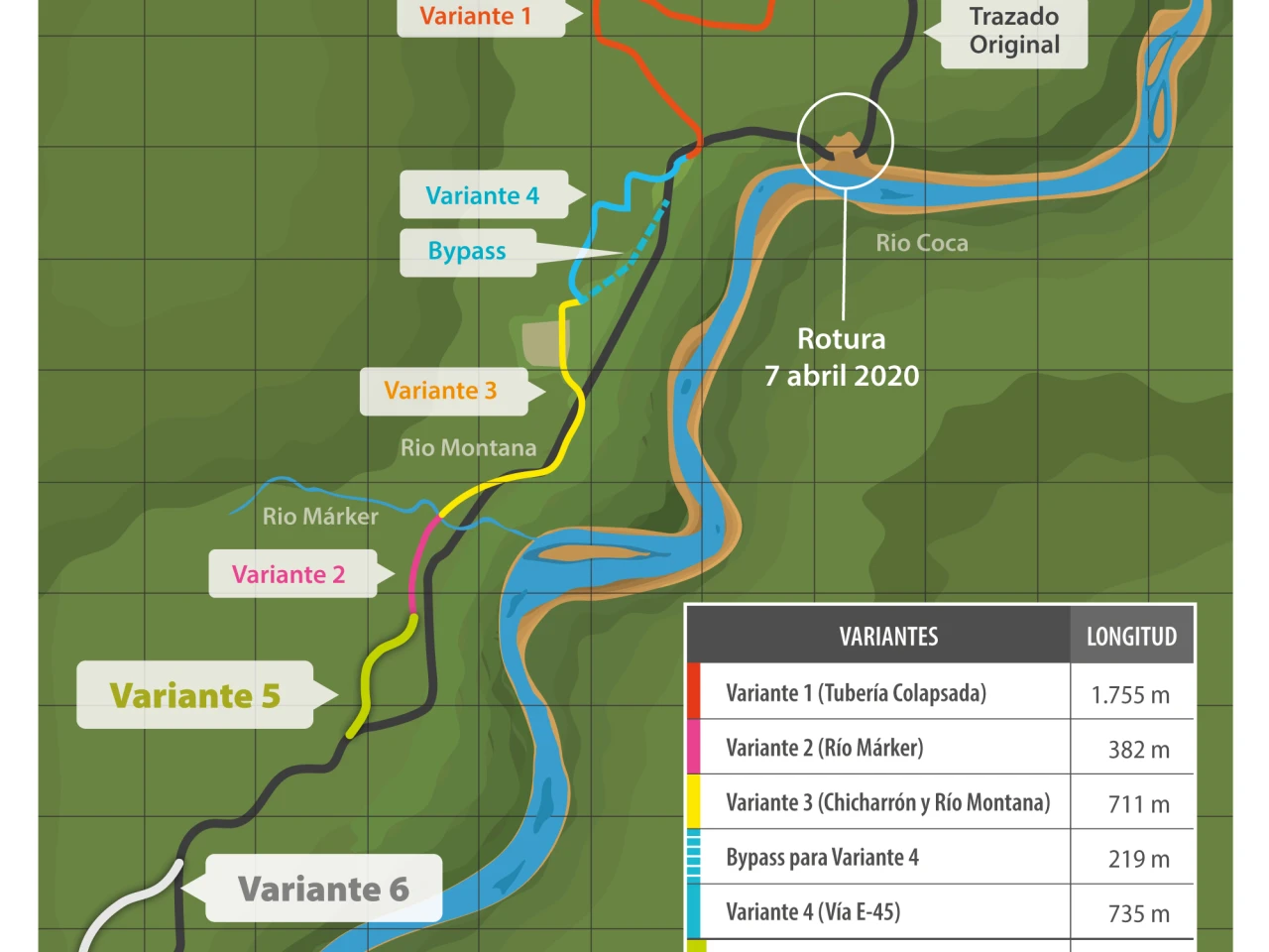 La quinta variante tendrá una extensión aproximada de 603 metros, mientras que la sexta variante será de 763 metros y estarán ubicadas en el sector de San Luis, en el límite provincial entre Napo y Sucumbíos.