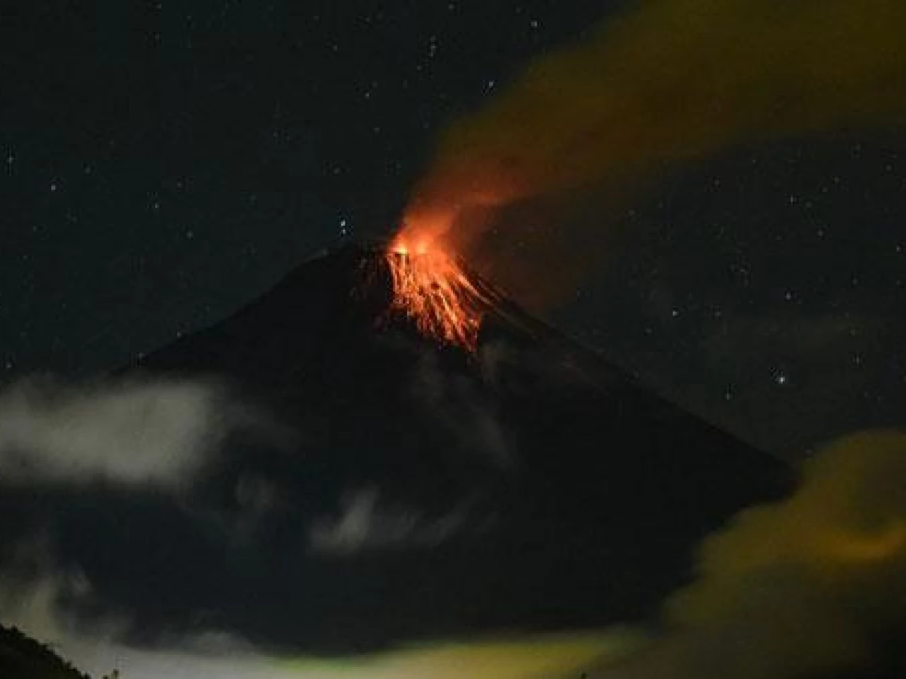 Piedras incandescentes, emisión de gas y ceniza en el volcán Tungurahua