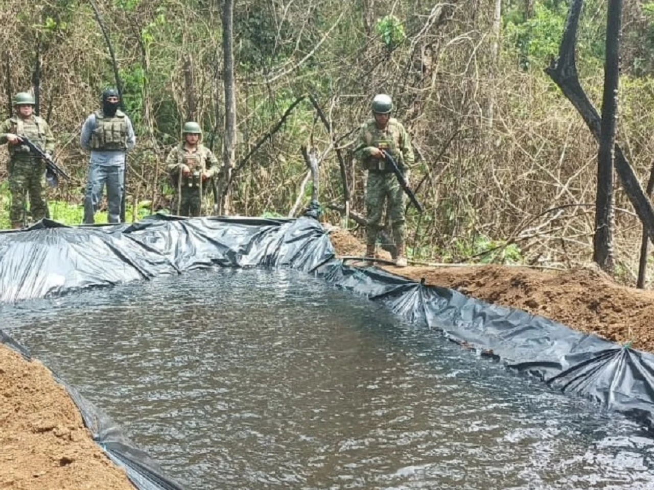 En el sector Río Doch hallaron una piscina artesanal con más de 24 mil litros de combustible (gasolina blanca), según informó las Fuerzas Armadas en su cuenta de Twitter. Medía aproximadamente 15x4 metros y 1.5 metros de profundidad. Estaba a unos 500 metros del poliducto, escondida entre los matorrales.